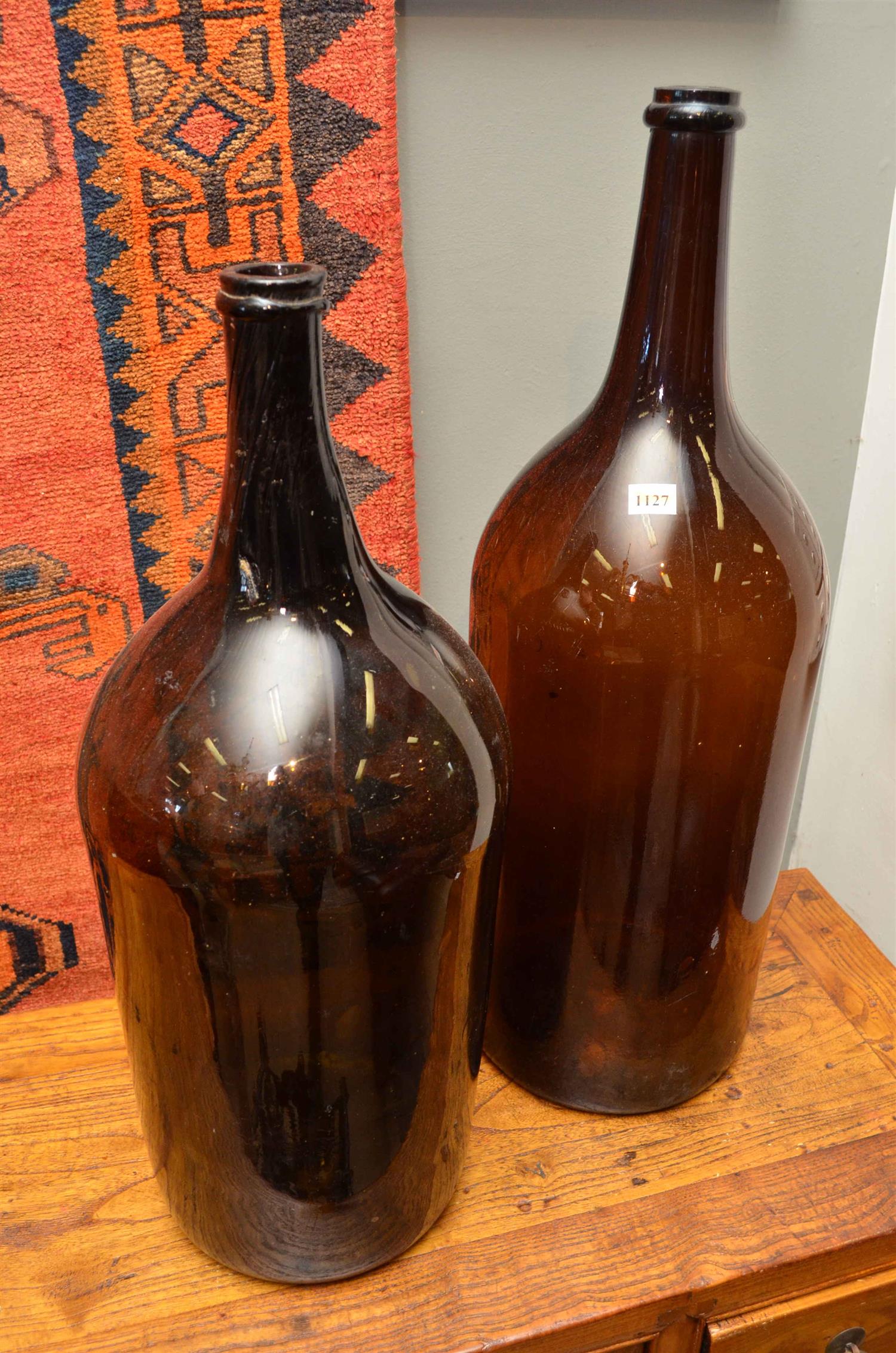 TWO FRENCH HAND BLOWN GLASS BOTTLES, CIRCA 1860