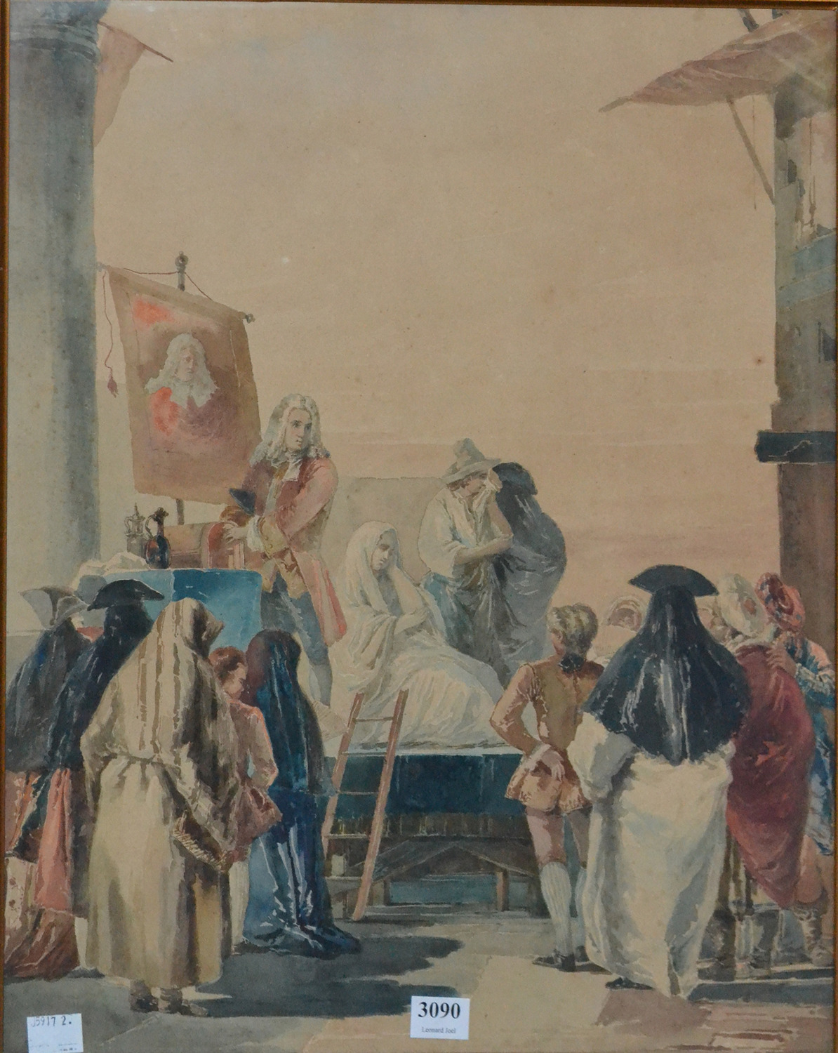 LUIGI ROSSINI, FIGURE SCENE, WATERCOLOUR, 43 X 35CM