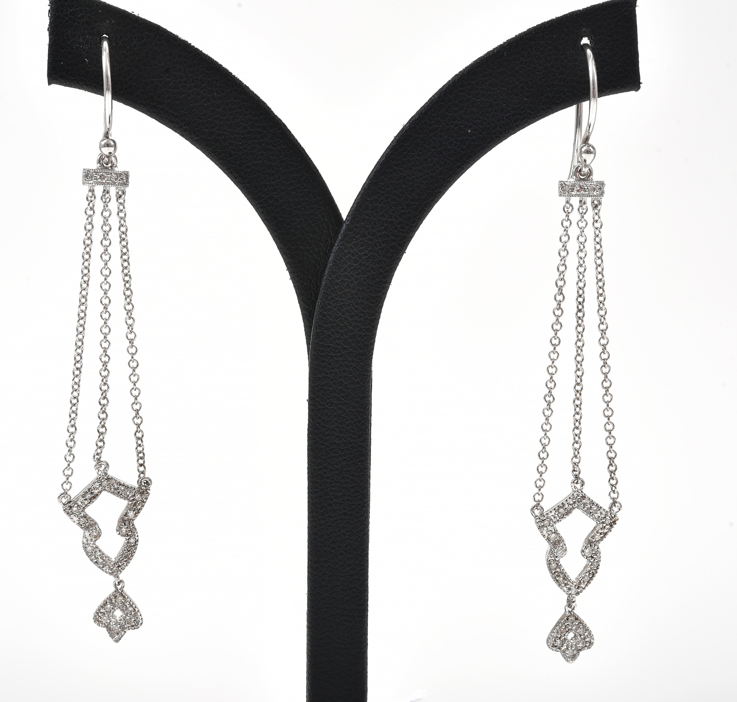 A PAIR OF DIAMOND EARRINGS IN 14CT GOLD WITH 9CT HOOKS