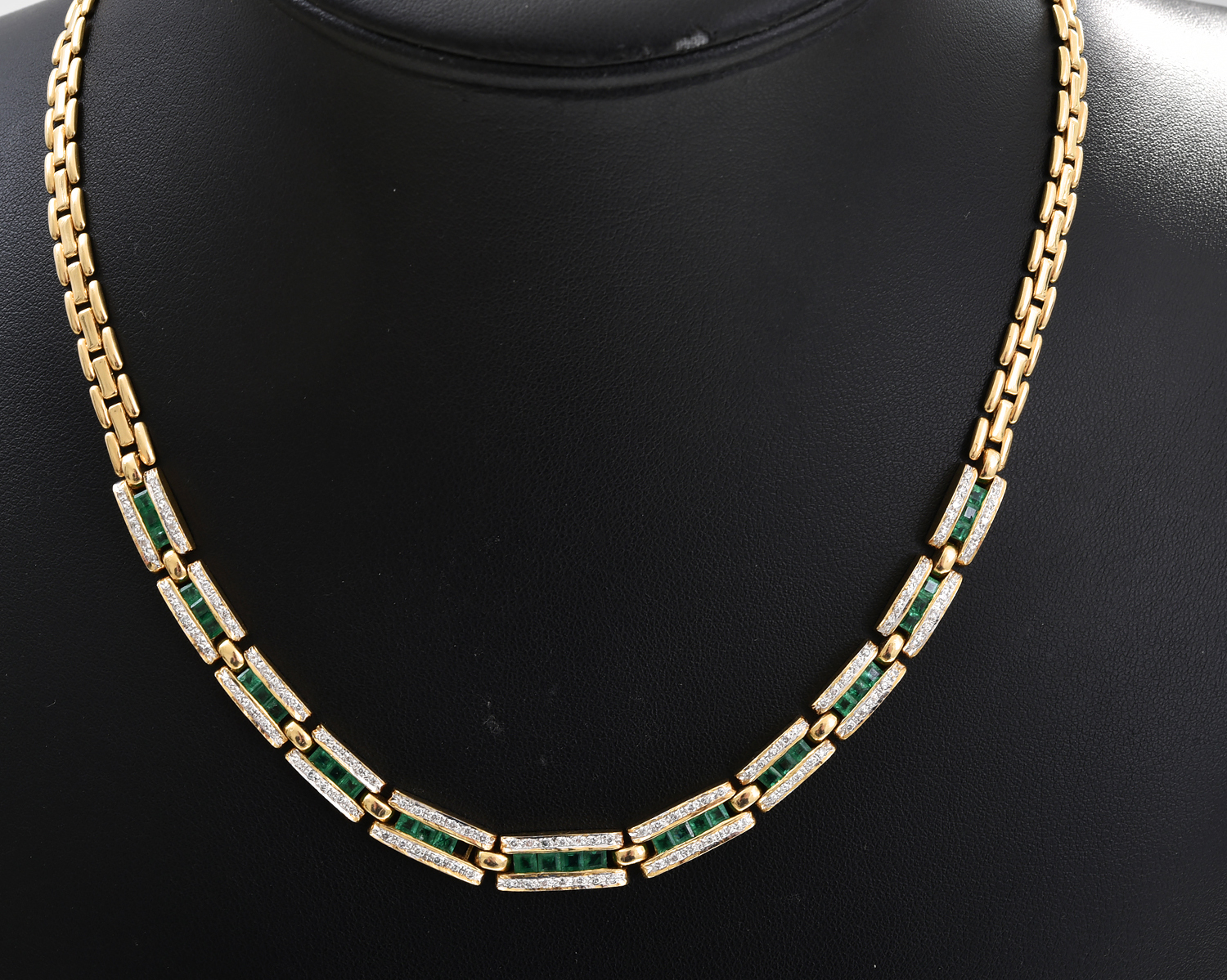 AN EMERALD AND DIAMOND NECKLACE IN 18CT GOLD, A/F