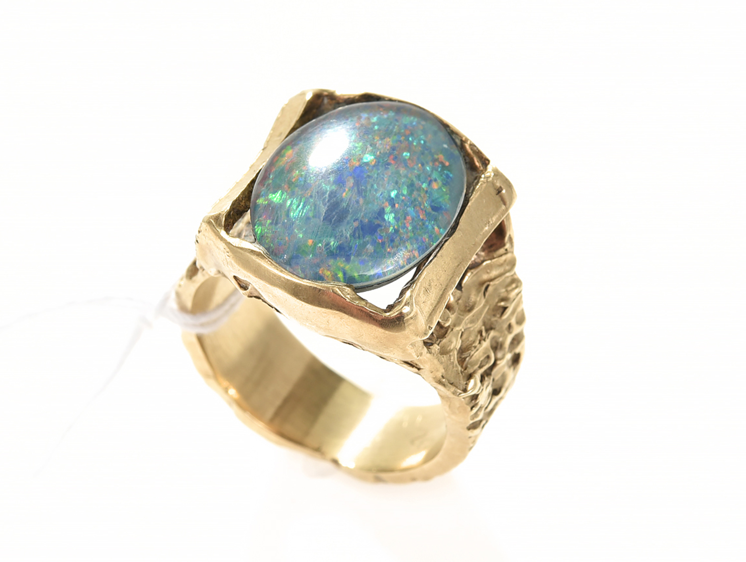 AN OPAL TRIPLET RING IN 9CT GOLD.