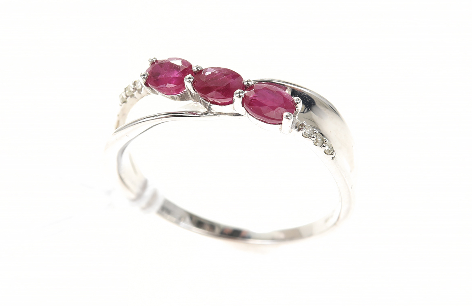 A PINK SAPPHIRE SUITE, INCLUDING A PAIR OF EARRINGS AND A RING WITH DIAMOND DETAIL, ALL IN WHITE GOLD