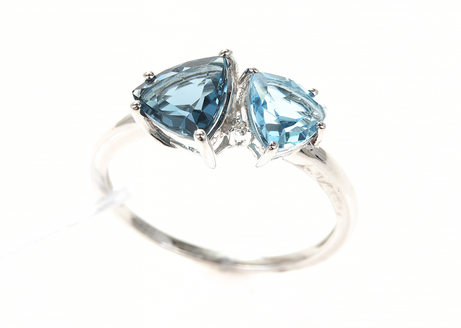 A SUITE OF JEWELLERY SET WITH BI-COLOURED TOPAZ AND DIAMOND, INCLUDING A PAIR OF DROP EARRINGS AND A RING, ALL IN WHITE GOLD