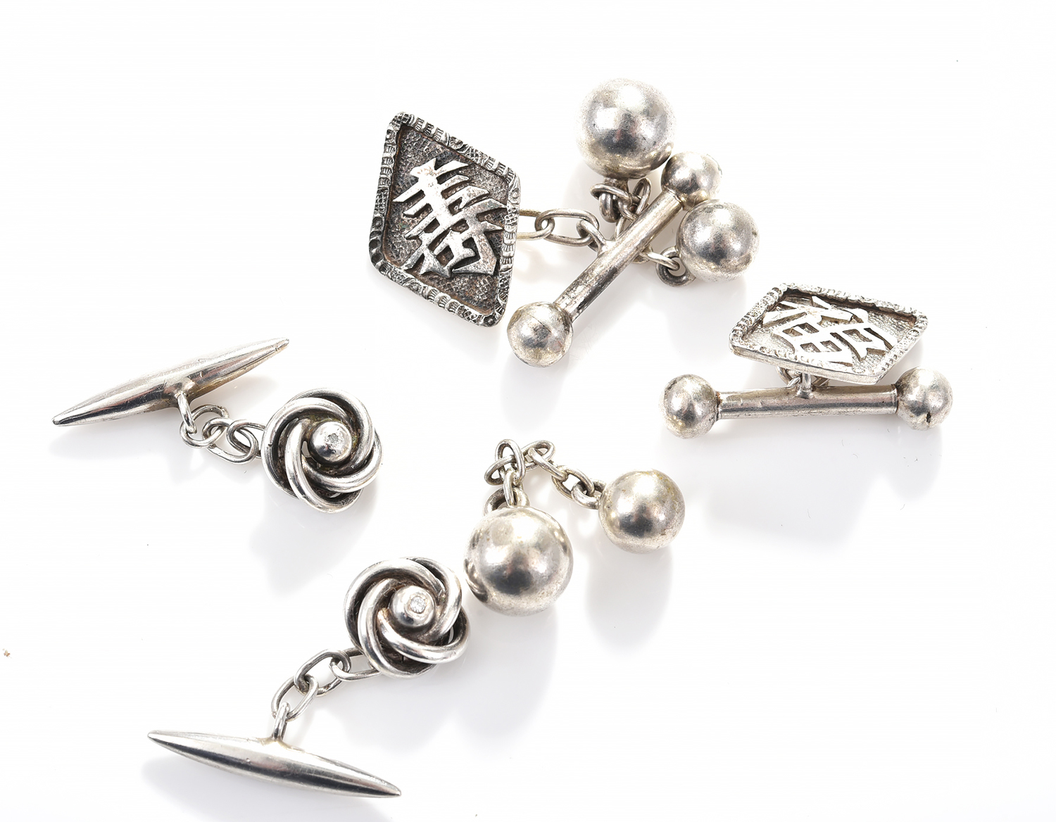 A COLLECTION OF SILVER CUFFLINKS, ONE PAIR DIAMOND SET.