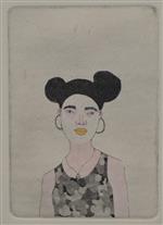 ARTIST UNKNOWN, PORTRAIT, (MICKEY MOUSE HAIRSTYLE), ETCHING, 14 X 9.5 CM