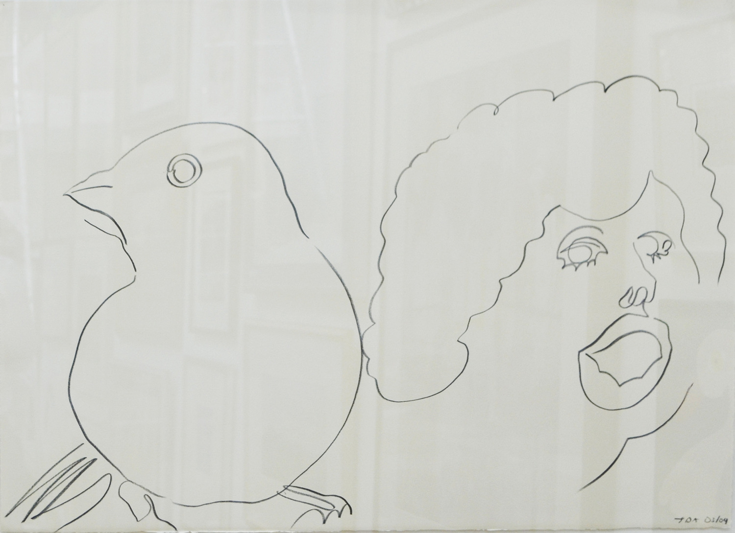 ARTIST UNKNOWN, (SIGNED SDK 03/04) LOWER RIGHT, FIGURE AND BIRD, PENCIL ON PAPER, 55 X 76 CM