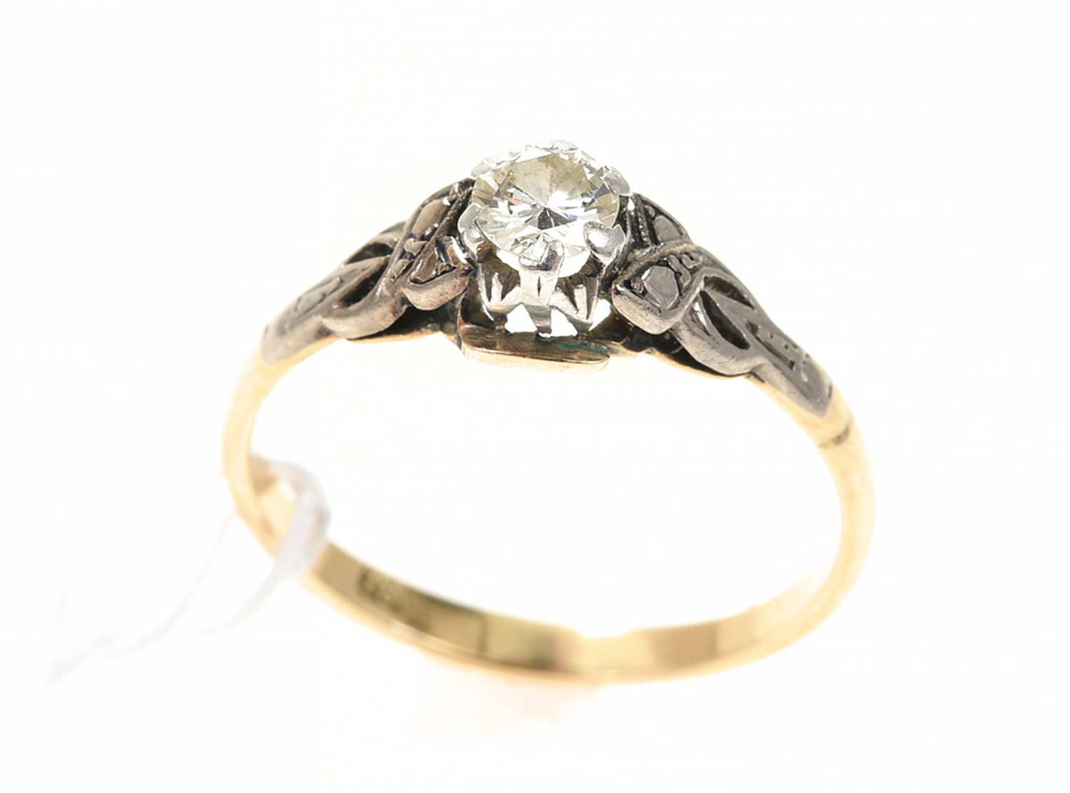 AN ART DECO DIAMOND RING IN 18CT GOLD.