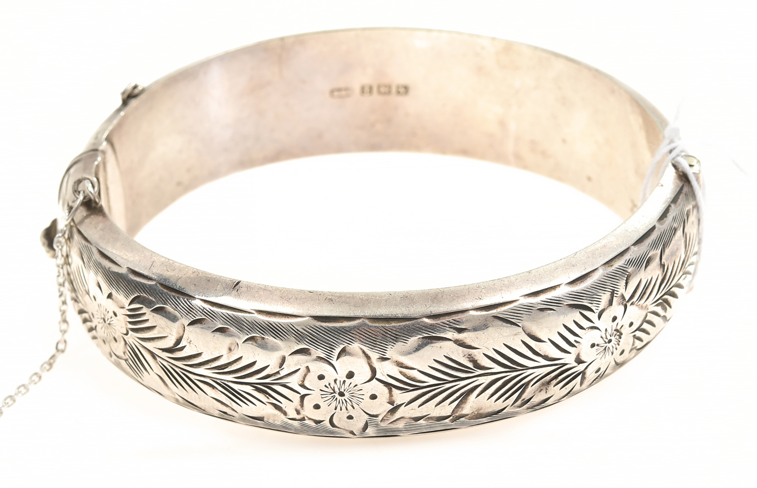 A VICTORIAN BANGLE IN SILVER, HALLMARKED.