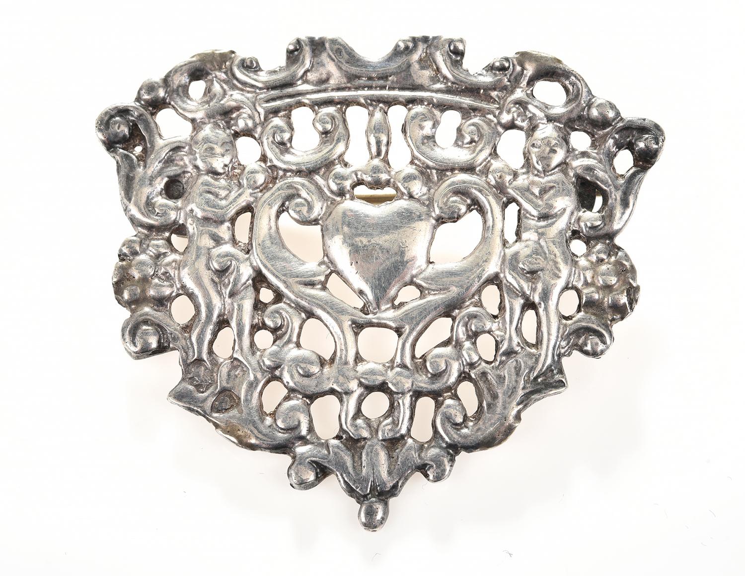 AN ANTIQUE SILVER PENDANT NECKLACE, HALLMARKED, WITH A BROOCH.