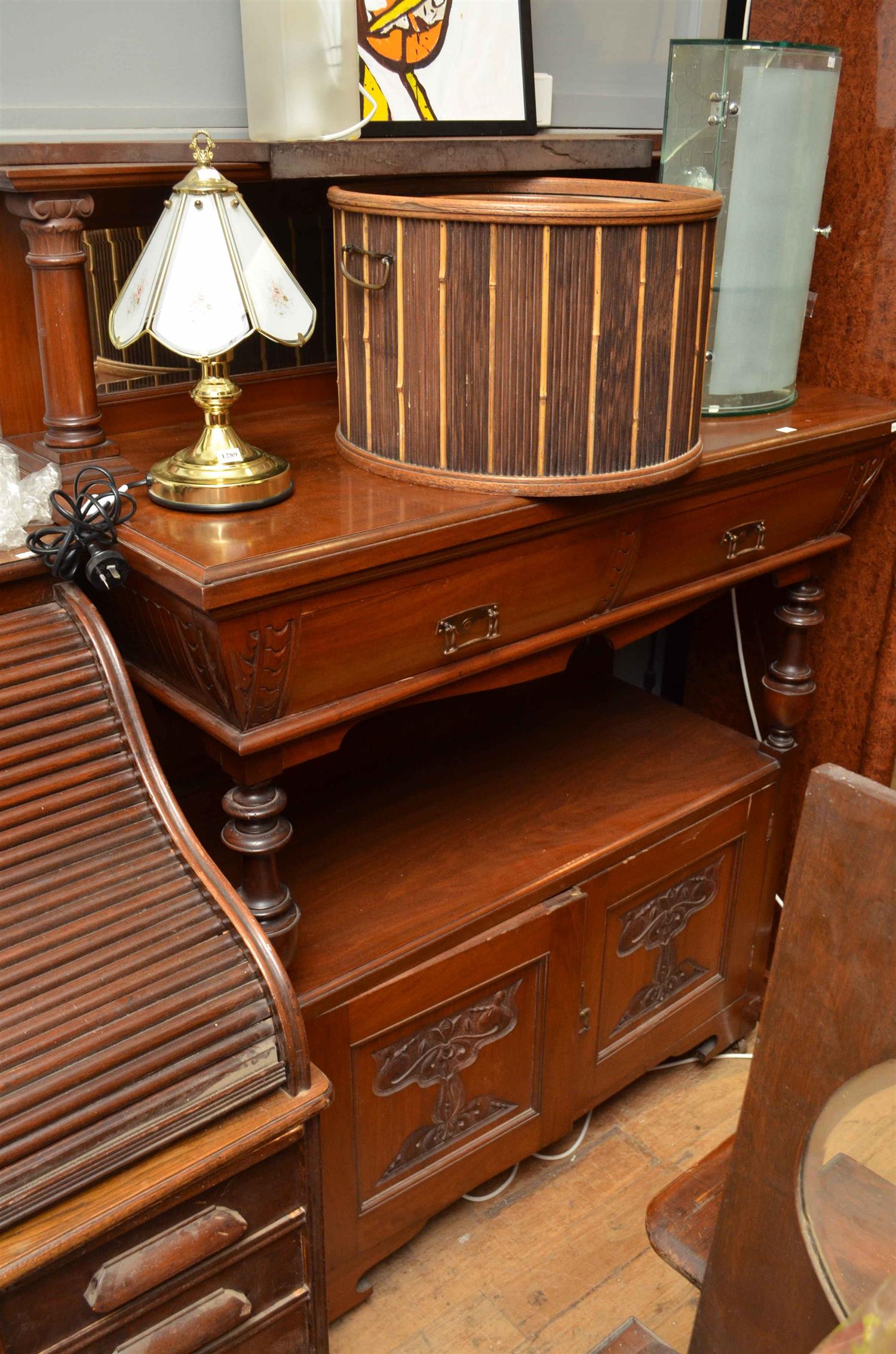 AN EDWARDIAN WALNUT DUMB WAITER (WITH BREAK TO PELMET)