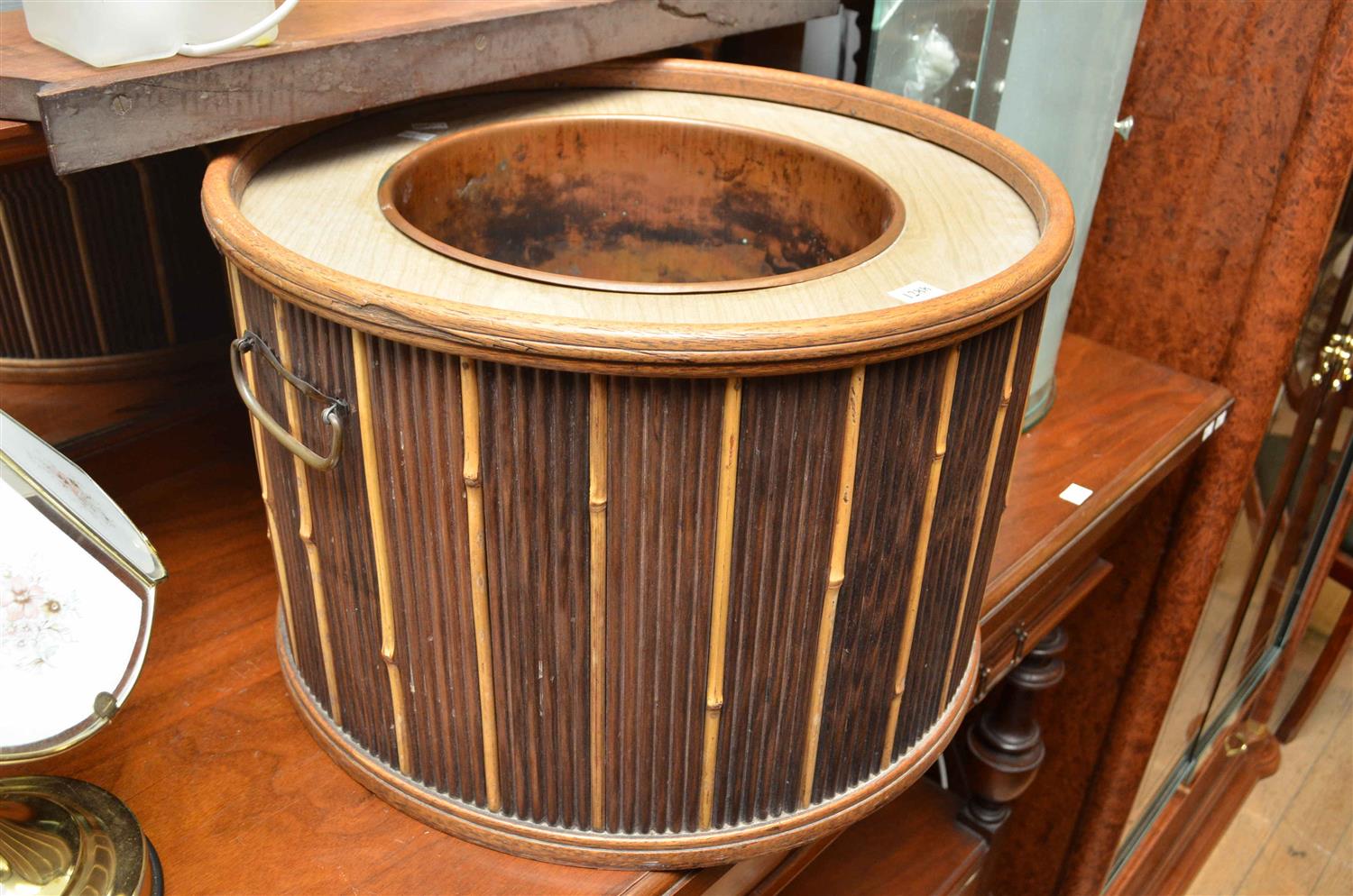 A JAPANESE CIRCULAR PLANT STAND WITH COPPER TRAY