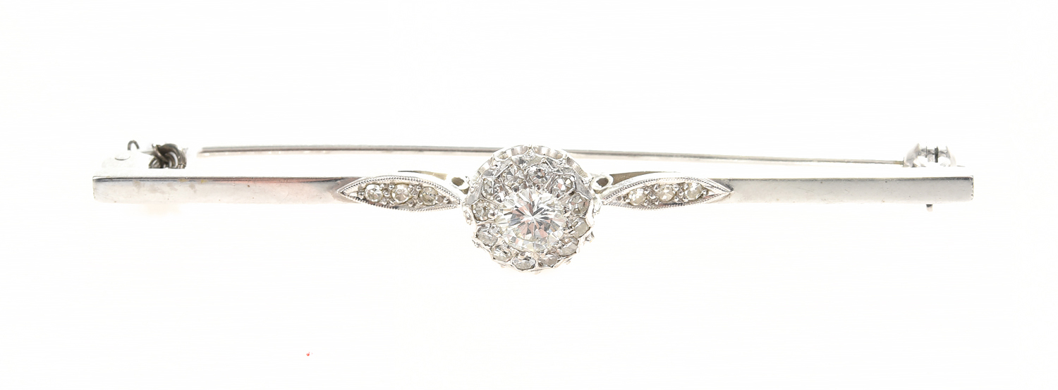 A VINTAGE DIAMOND CLUSTER BROOCH IN PLATINUM AND 18CT WHITE GOLD