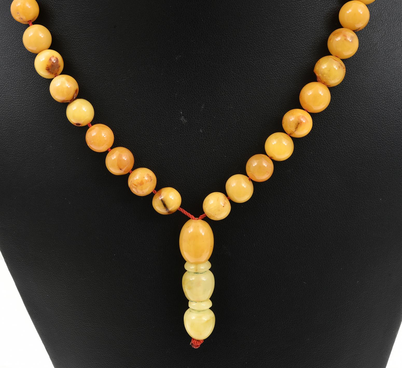 A STRAND OF GOLDEN AMBER BEADS