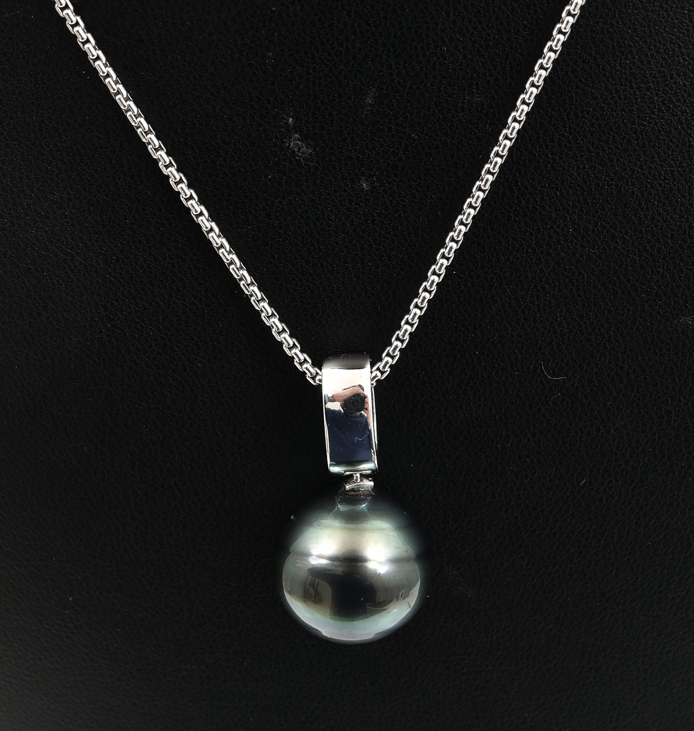 A TAHITIAN PEARL ENHANCER TO A ROUND BOX CHAIN ALL IN 9CT WHITE GOLD