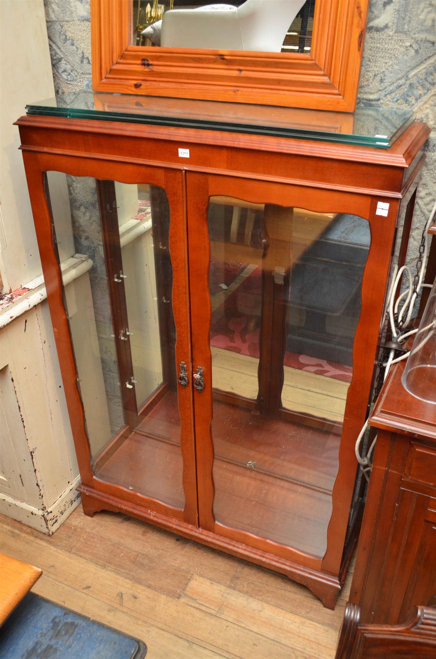 A GLASS FRONTED DISPLAY CABINET ( key in office)