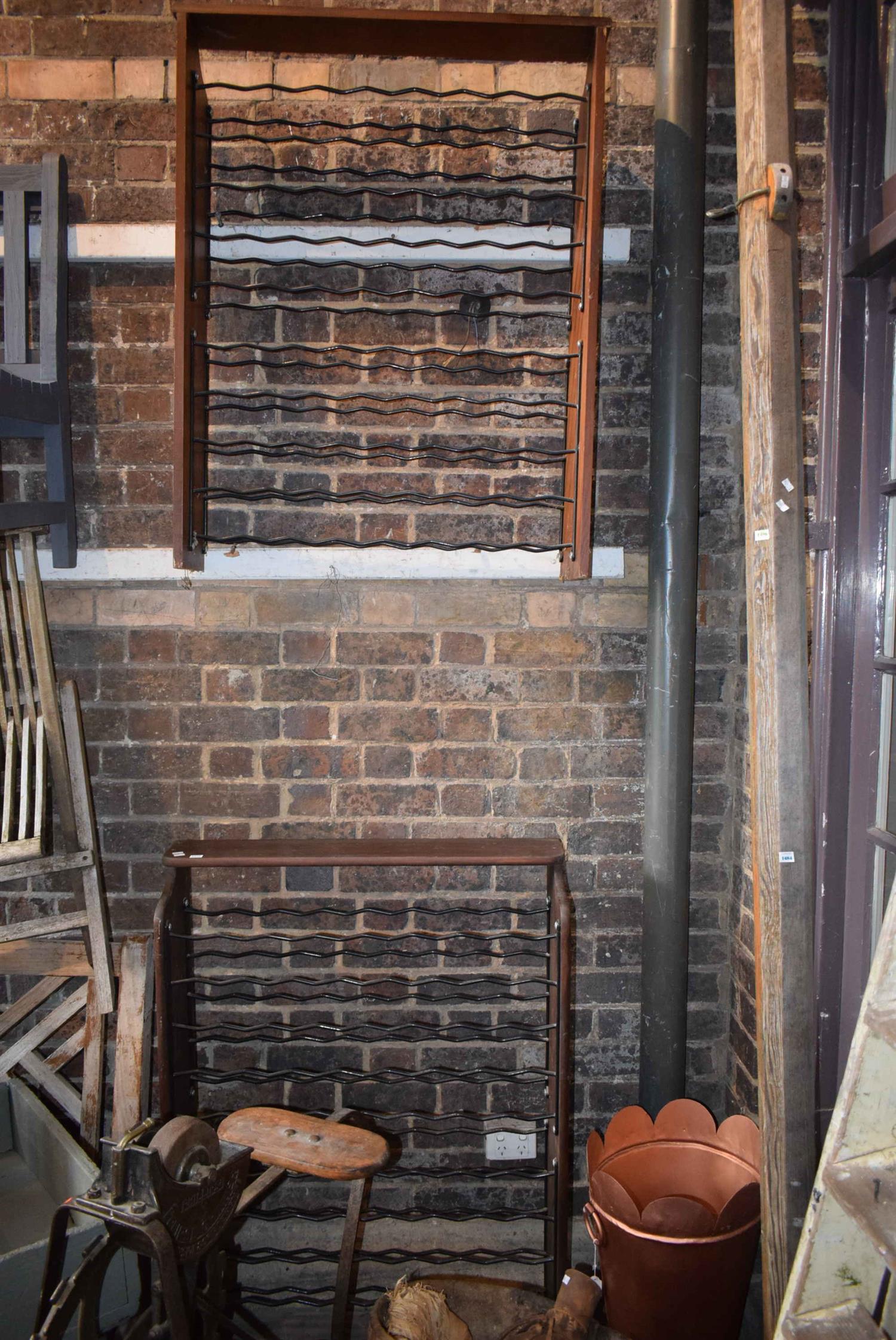 TWO TIMBER AND WIRE WINE RACKS AND A PLANT STAND