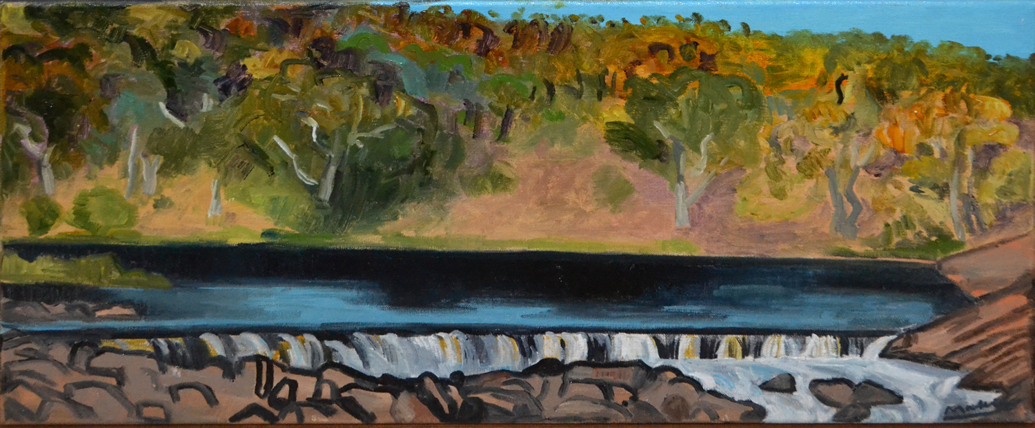 JEFF MAKIN, DIGHTS FALLS, OIL ON LINEN, 31 X 62CM