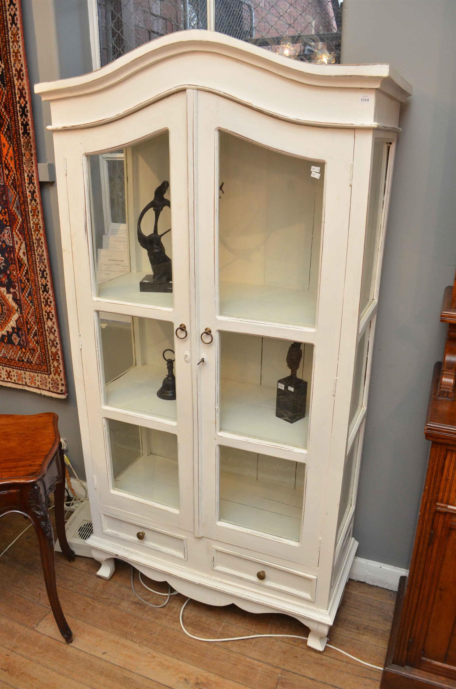 A FRENCH STYLE WHITE PAINTED DISPLAY CASE