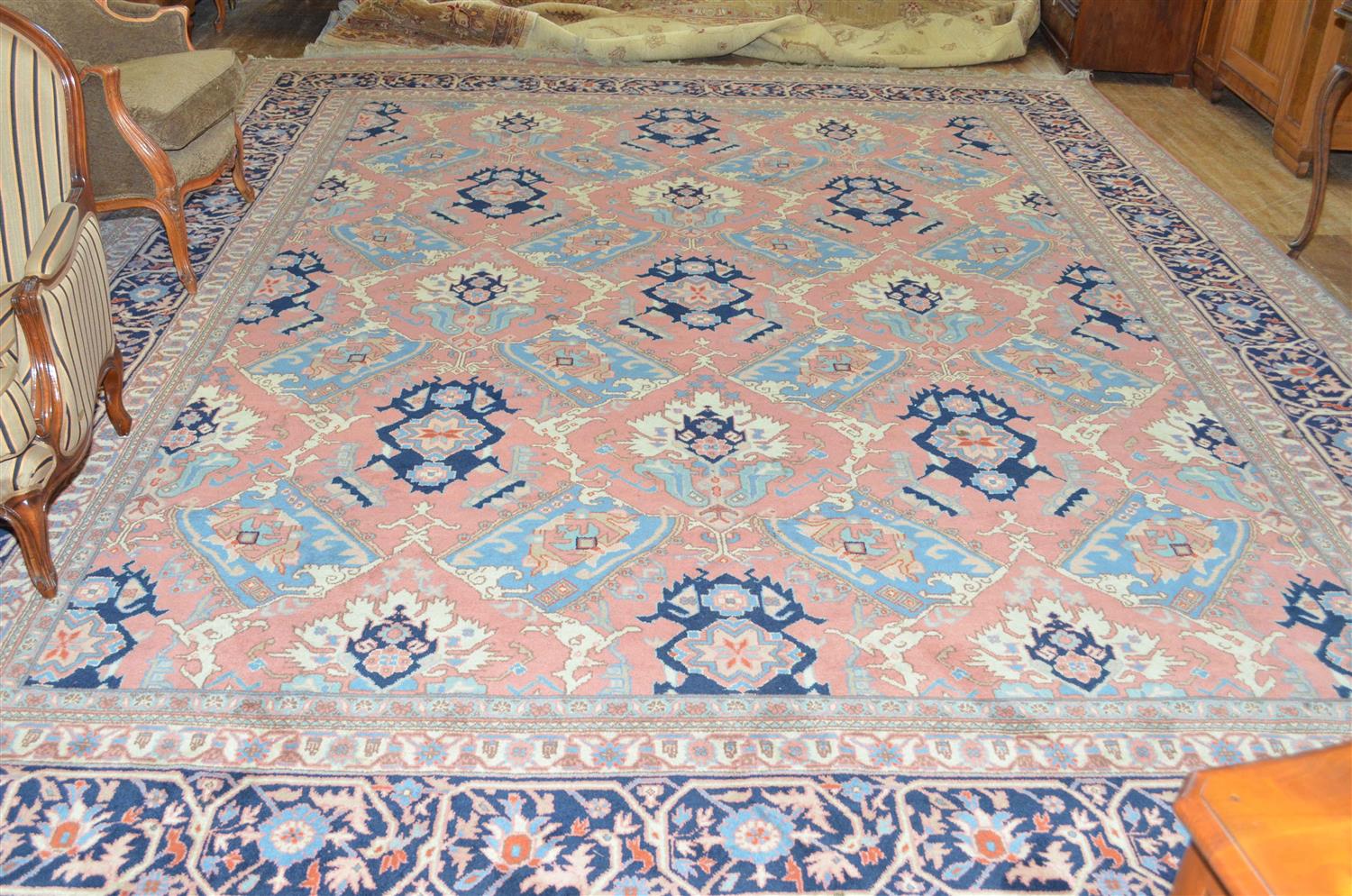 A 19TH CENTURY OUSHAK DESIGN RUG, WOOLEN HAND KNOTTED, IN LIGHT TONES (460 X 360 CM)
