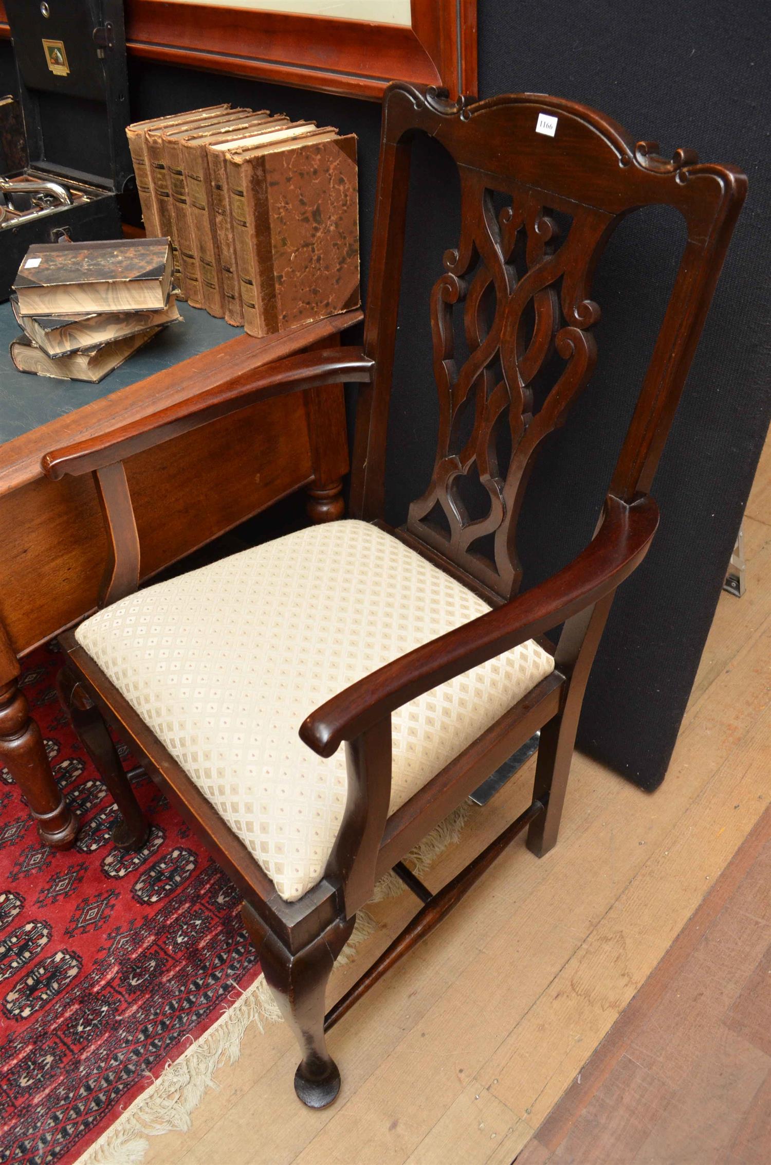 TWO GEORGIAN STYLE BLACKWOOD CARVERS WITH FRETWOOD BACK