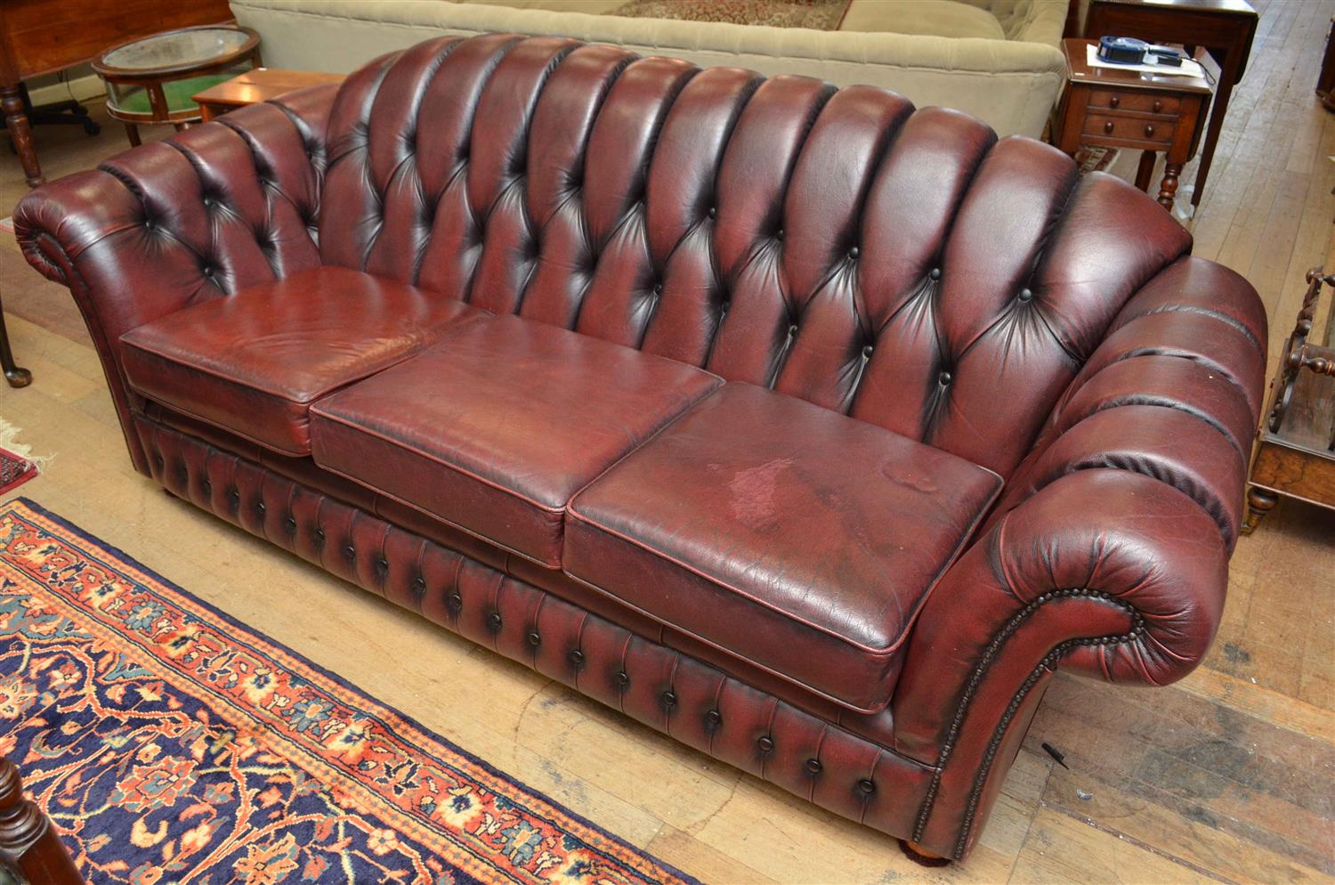 A THREE SEAT LEATHER CHESTERFIELD LOUNGE (SOME WARE)