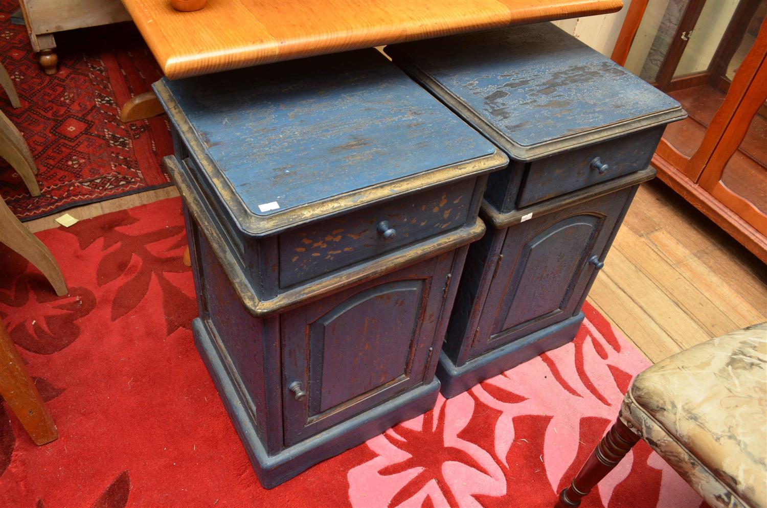 A PAIR OF RUSTIC BLUE PAINTED BEDSIDE TABLES