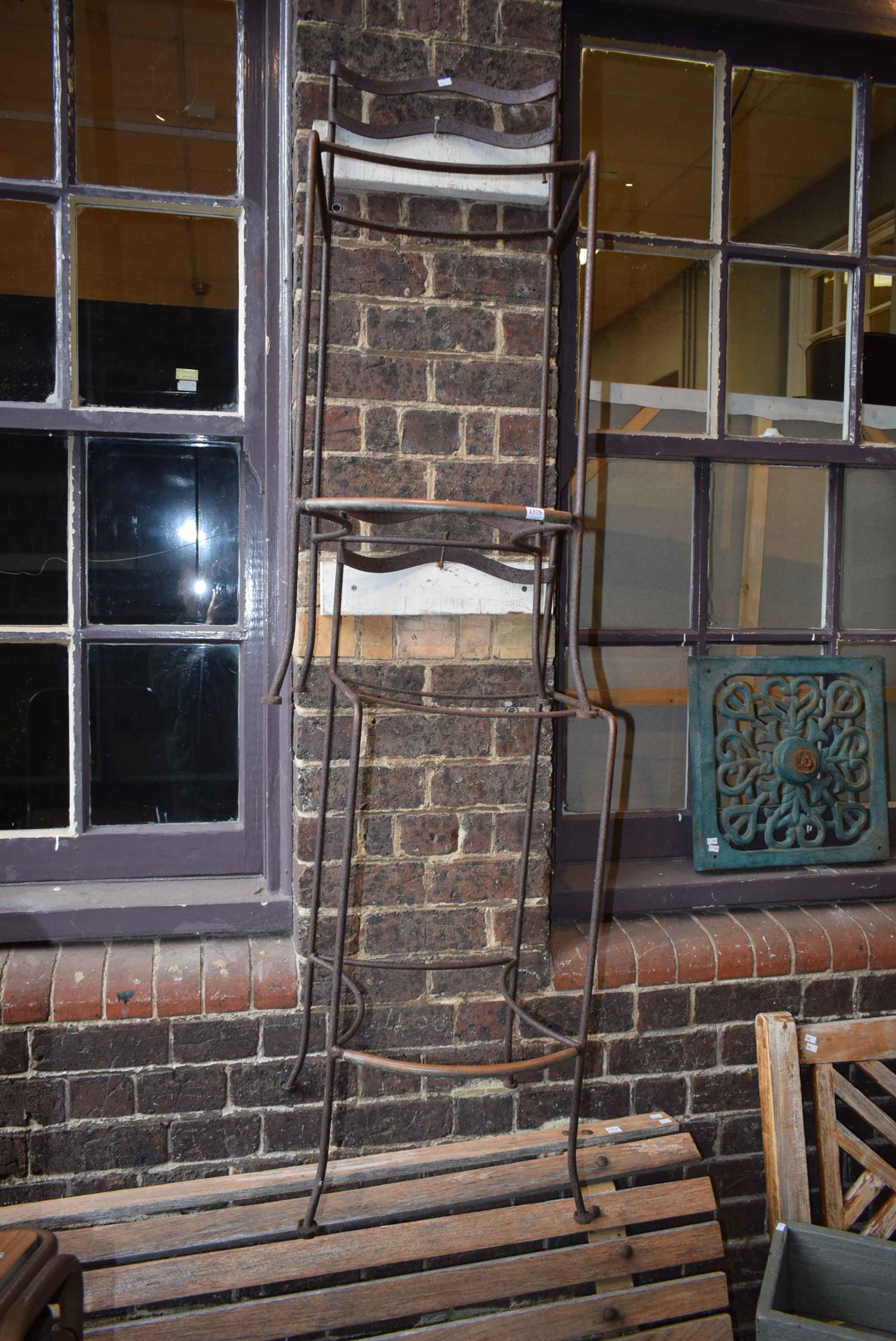 TWO FRENCH STYLE WROUGHT IRON BAR STOOL FRAMES