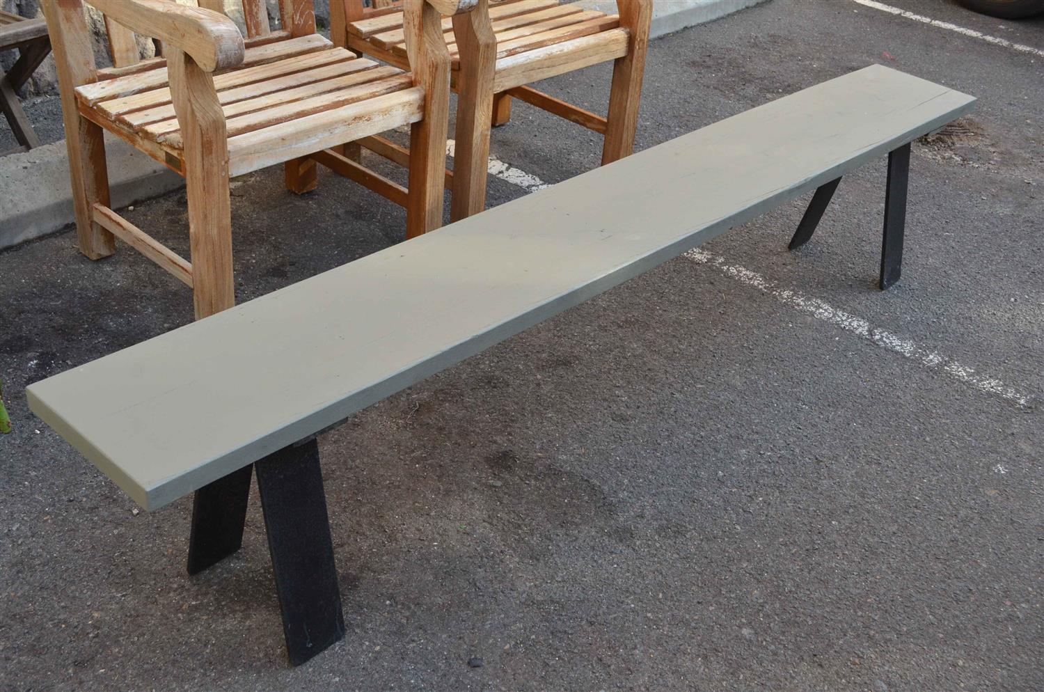 A HARDWOOD AND STEEL INDUSTRIAL STYLE BENCH