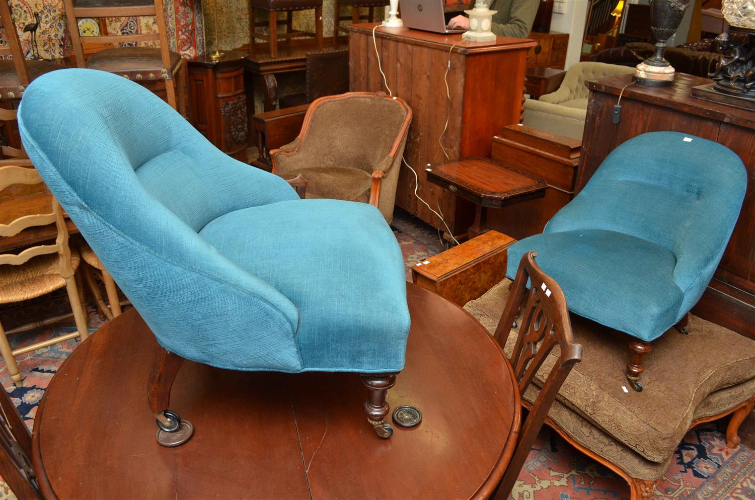 TWO BLUE VELOUR BEDROOM CHAIRS