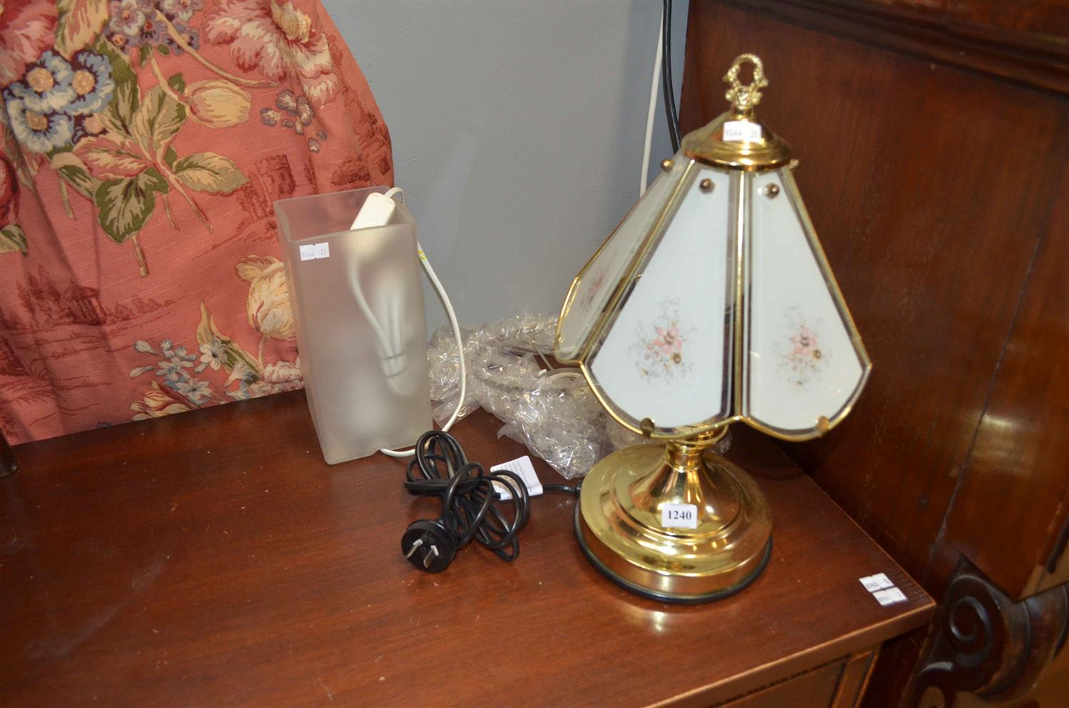 A TABLE LAMP AND A CONTEMPORARY LAMP WITH SHADE