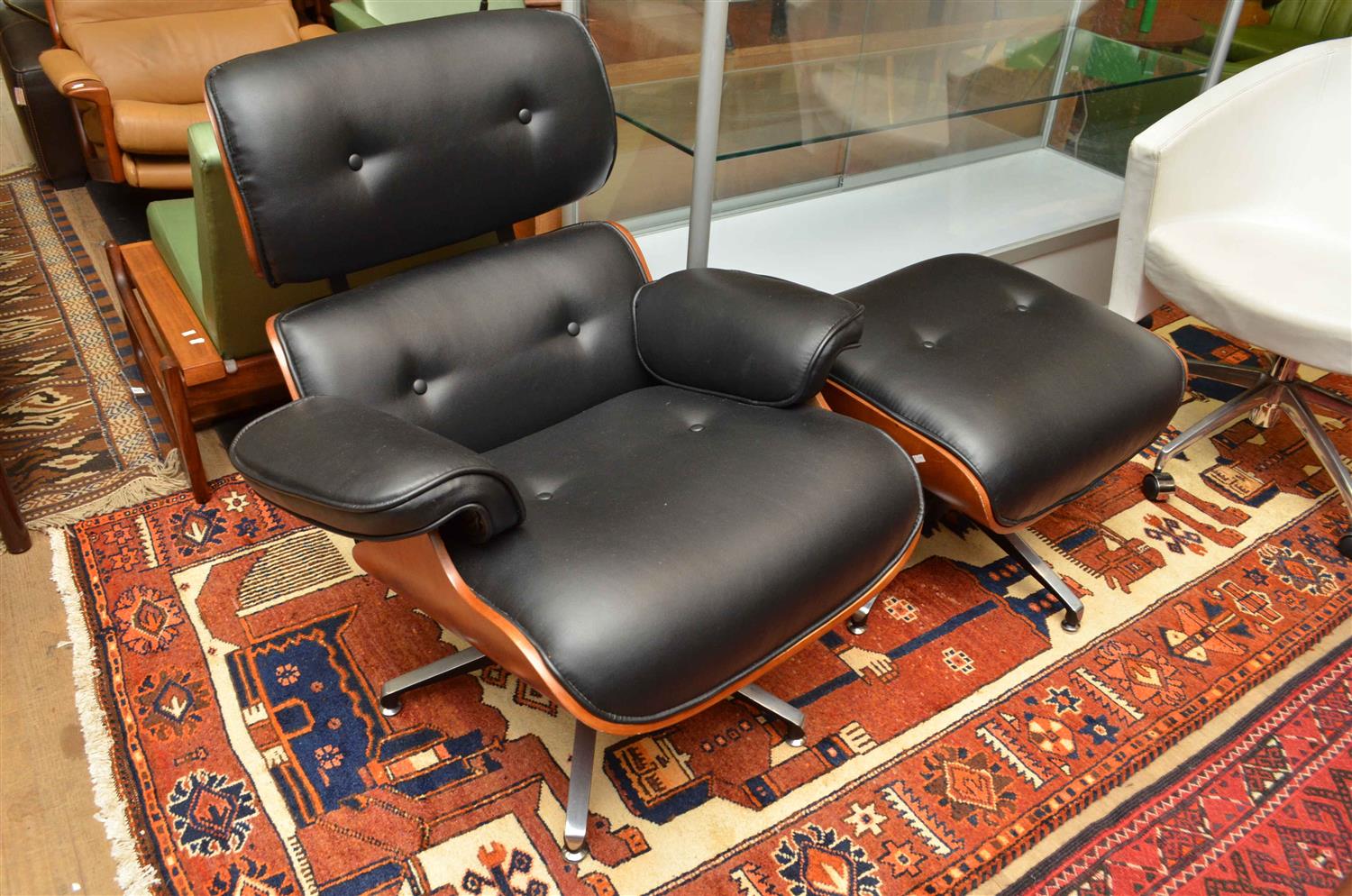 A REPRODUCTION EAMES ARMCHAIR AND OTTOMAN