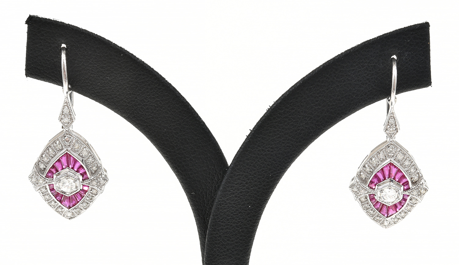 A PAIR OF RUBY AND DIAMOND SET EARRINGS IN 18CT WHITE GOLD