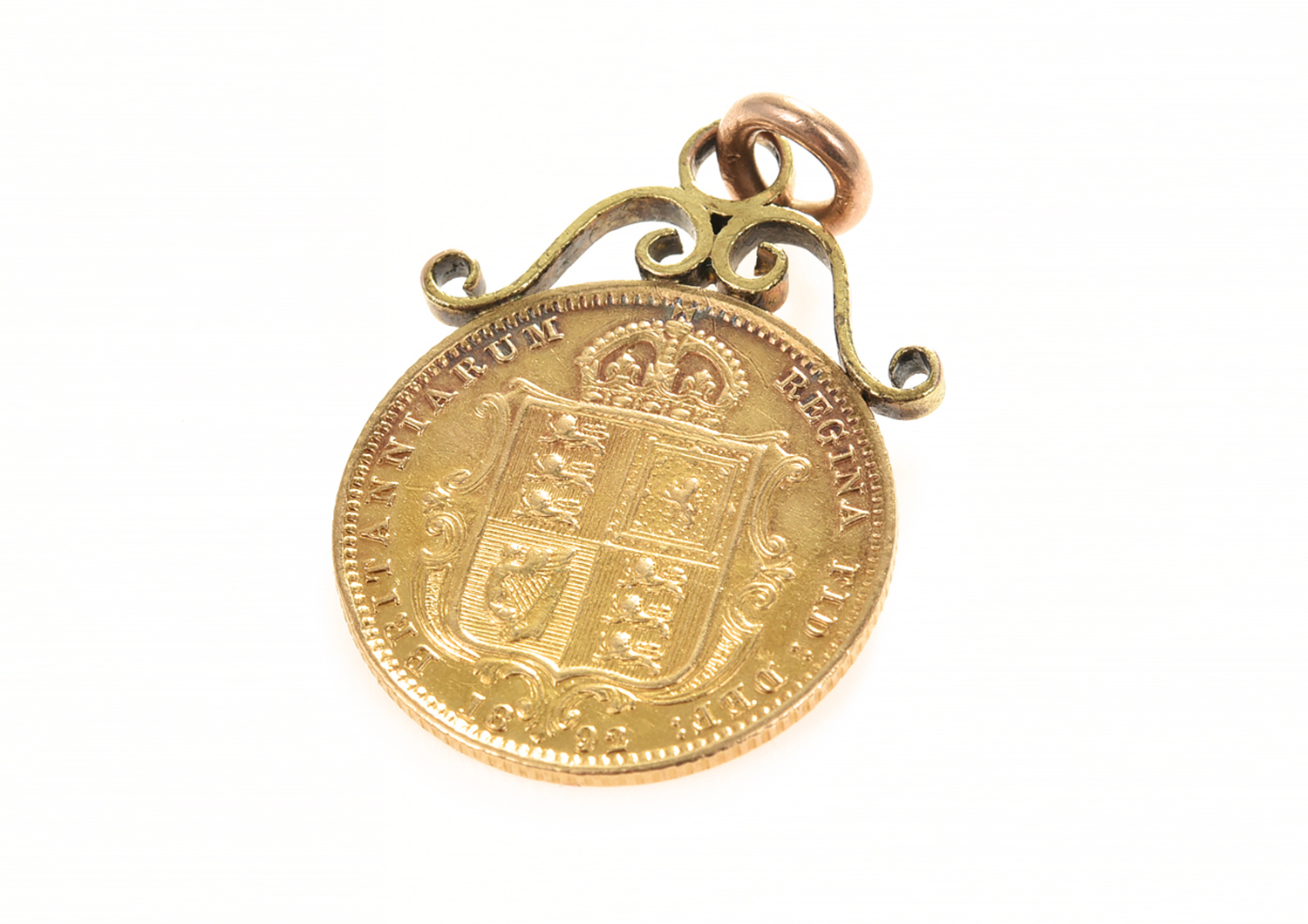 A 1892 HALF SOVEREIGN PENDANT IN 22CT GOLD