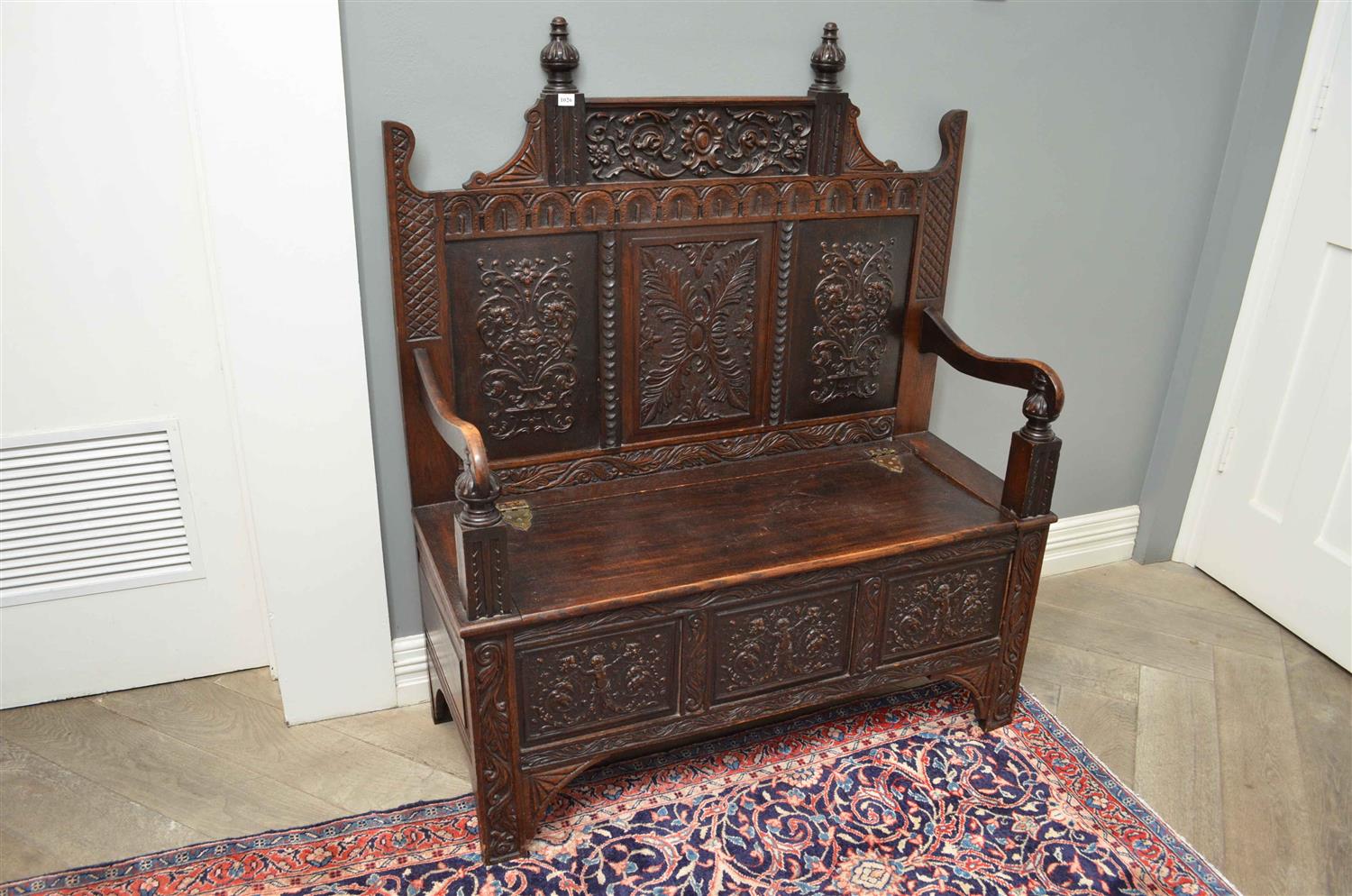 AN 18TH CENTURY CARVED BENCH SEAT (a/f)