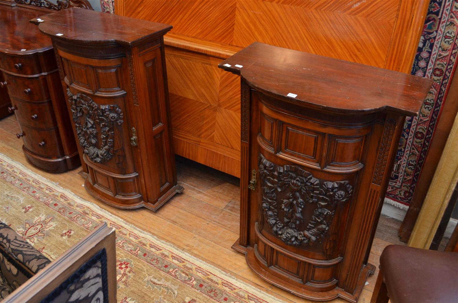 A PAIR OF VICTORIAN HEAVILY CARVED SIDE CUPBOARDS