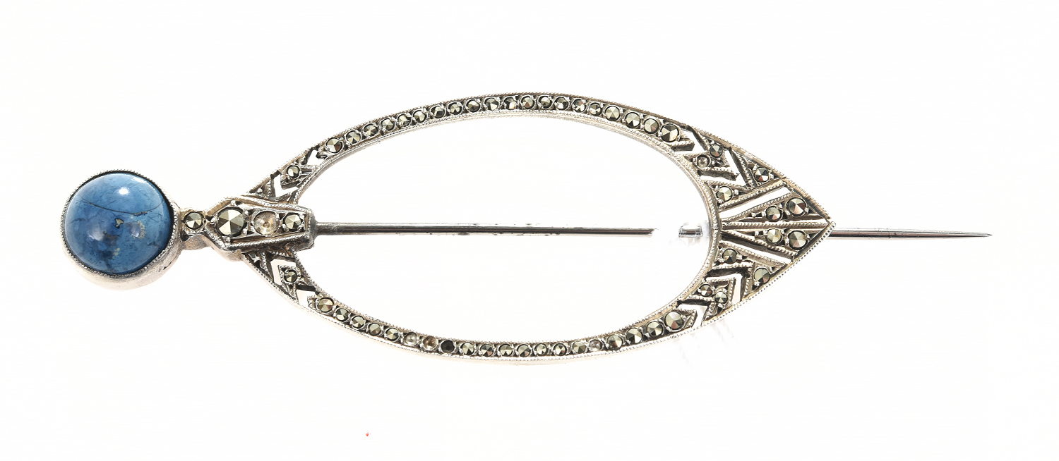 AN ART DECO MARCASITE AND LAPIS LAZULI STICK PIN, A/F