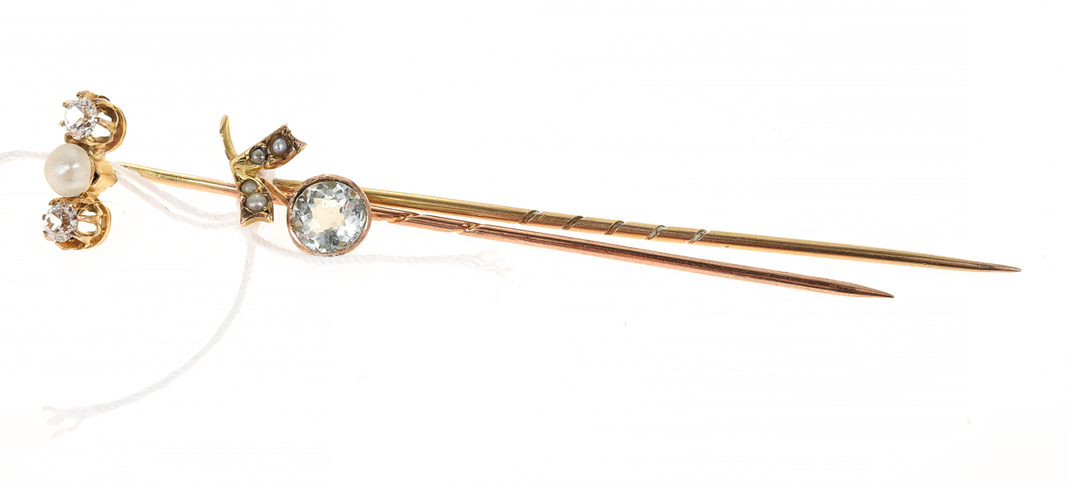 TWO GEM SET STICK PINS IN 9CT GOLD