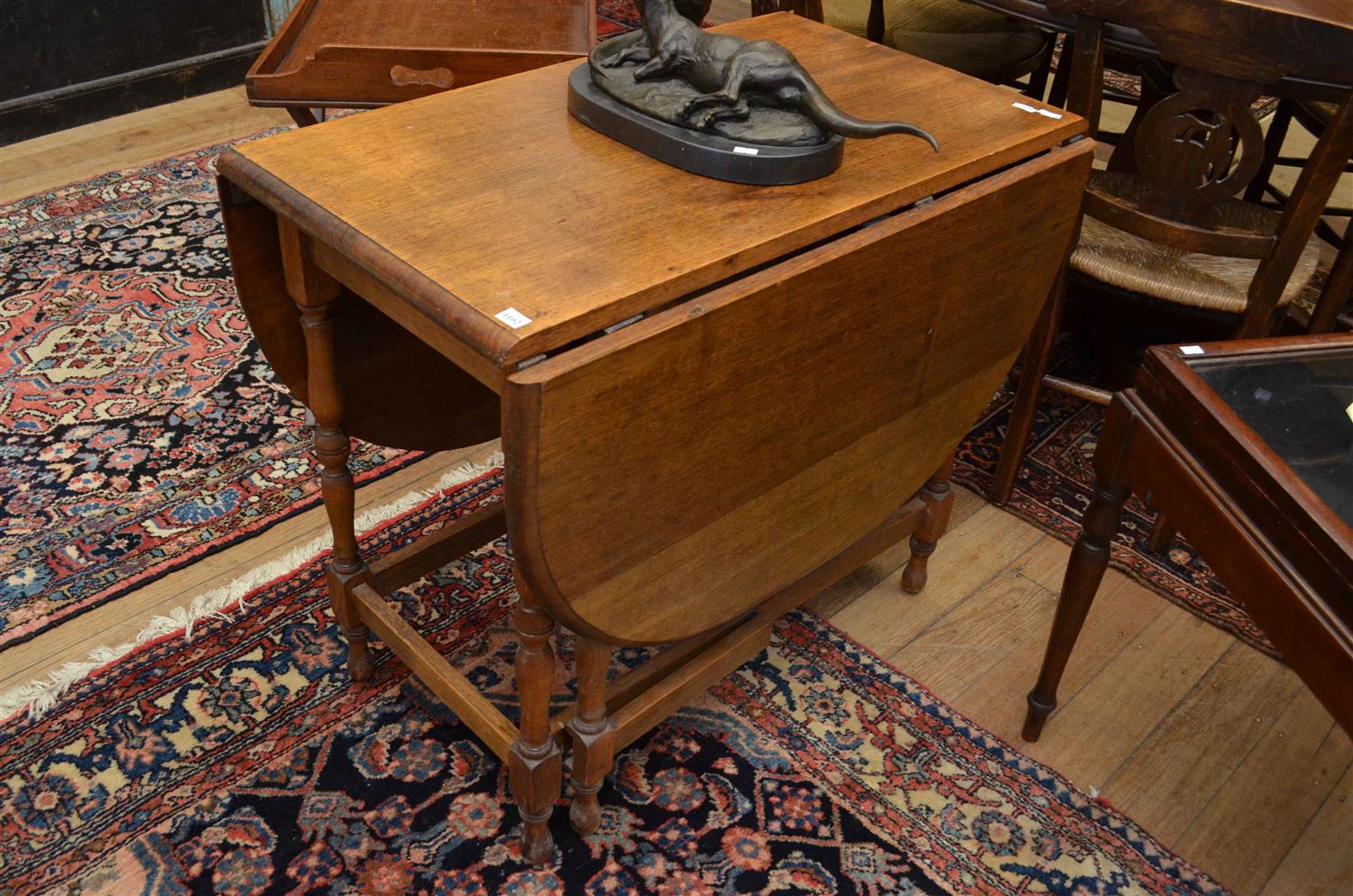 A 1920'S ENGLISH OAK DROP SIDE GATELEG TABLE