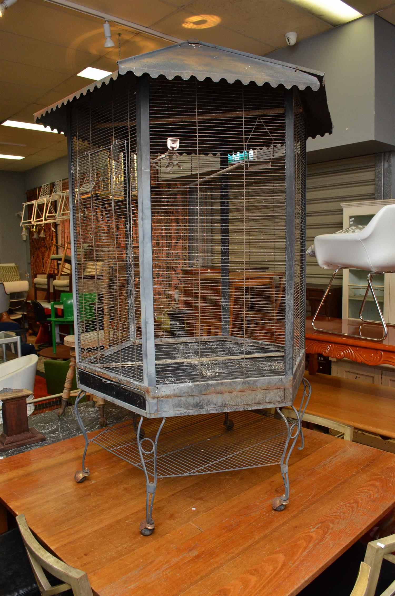A LARGE 1960'S METAL BIRD CAGE