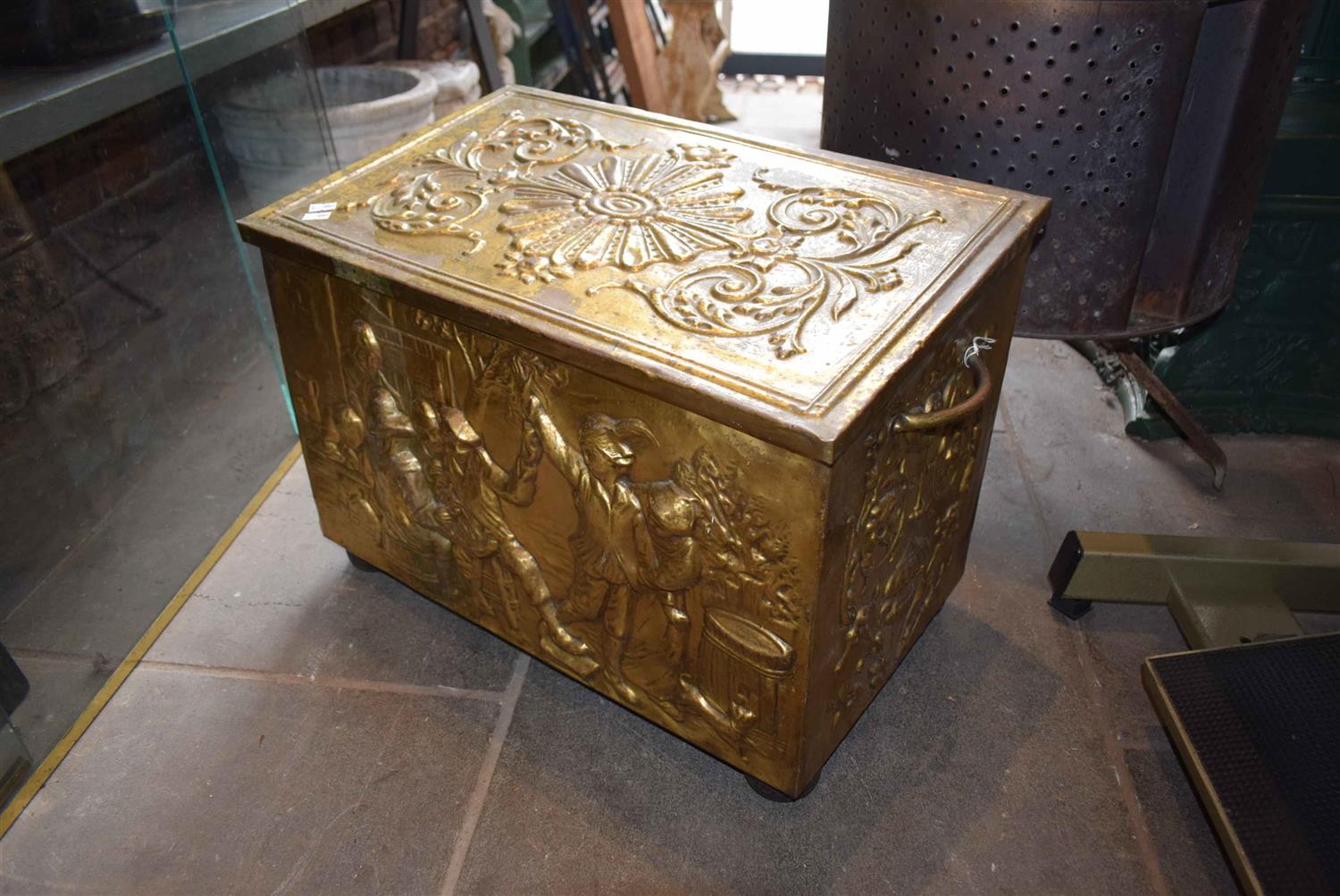 A BRASS RELIEF WOOD BOX
