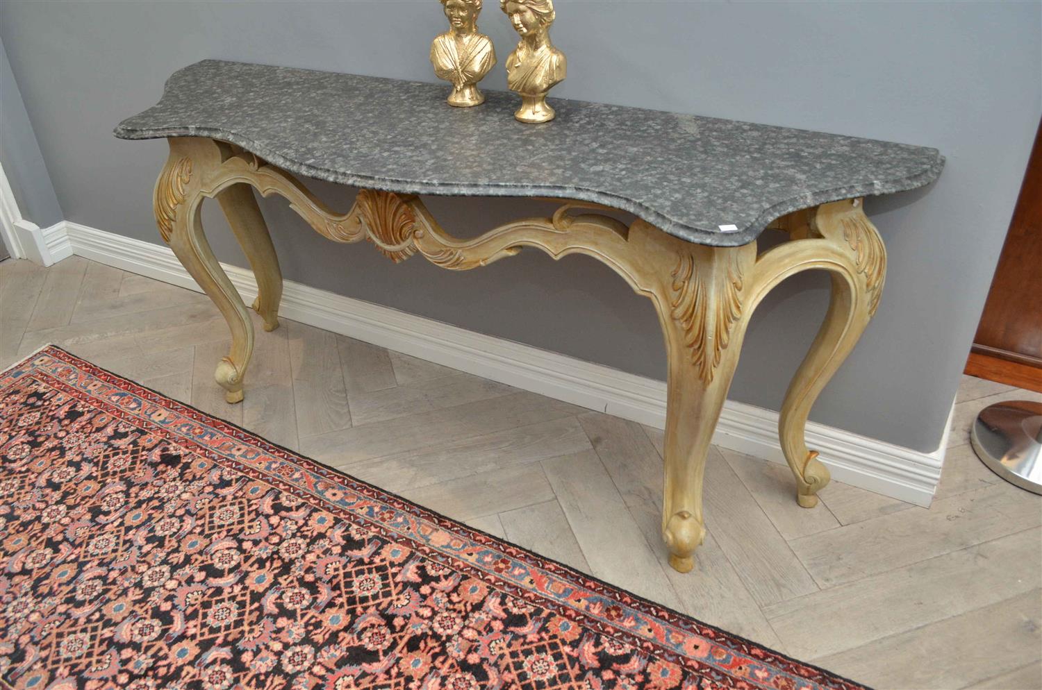 A FRENCH STYLE CONSOLE WITH SERPENTINE MARBLE TOP