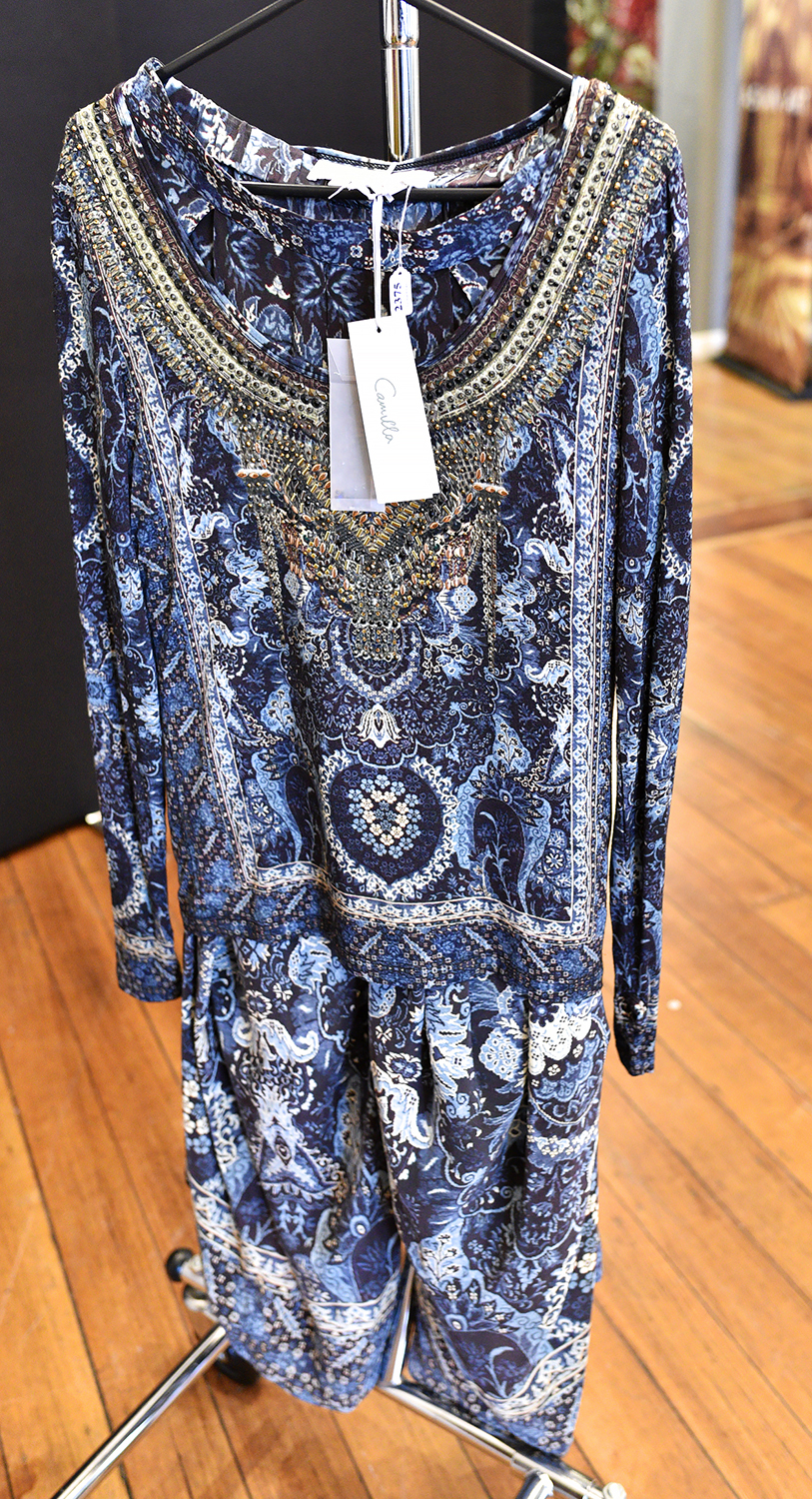 AN EMBELLISHED TWO PIECE SET BY CAMILLA, PANTS IN SILK, SIZE 2, BRAND NEW WITH TAGS