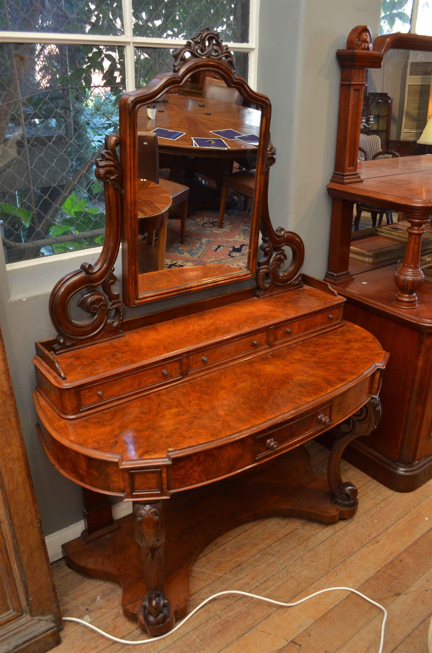 A BURR WALNUT ENGLISH DRESSING TABLE