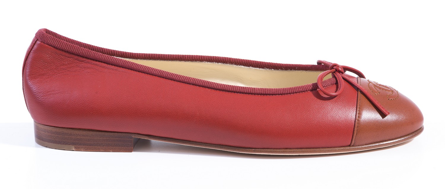 Styled in burnt orange leather with grosgrain trim, and contrast leather toe, size 36.5, boxed.