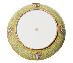 A CHINESE YELLOW-GROUND FAMILLE ROSE 'MEDALLION' DISH
