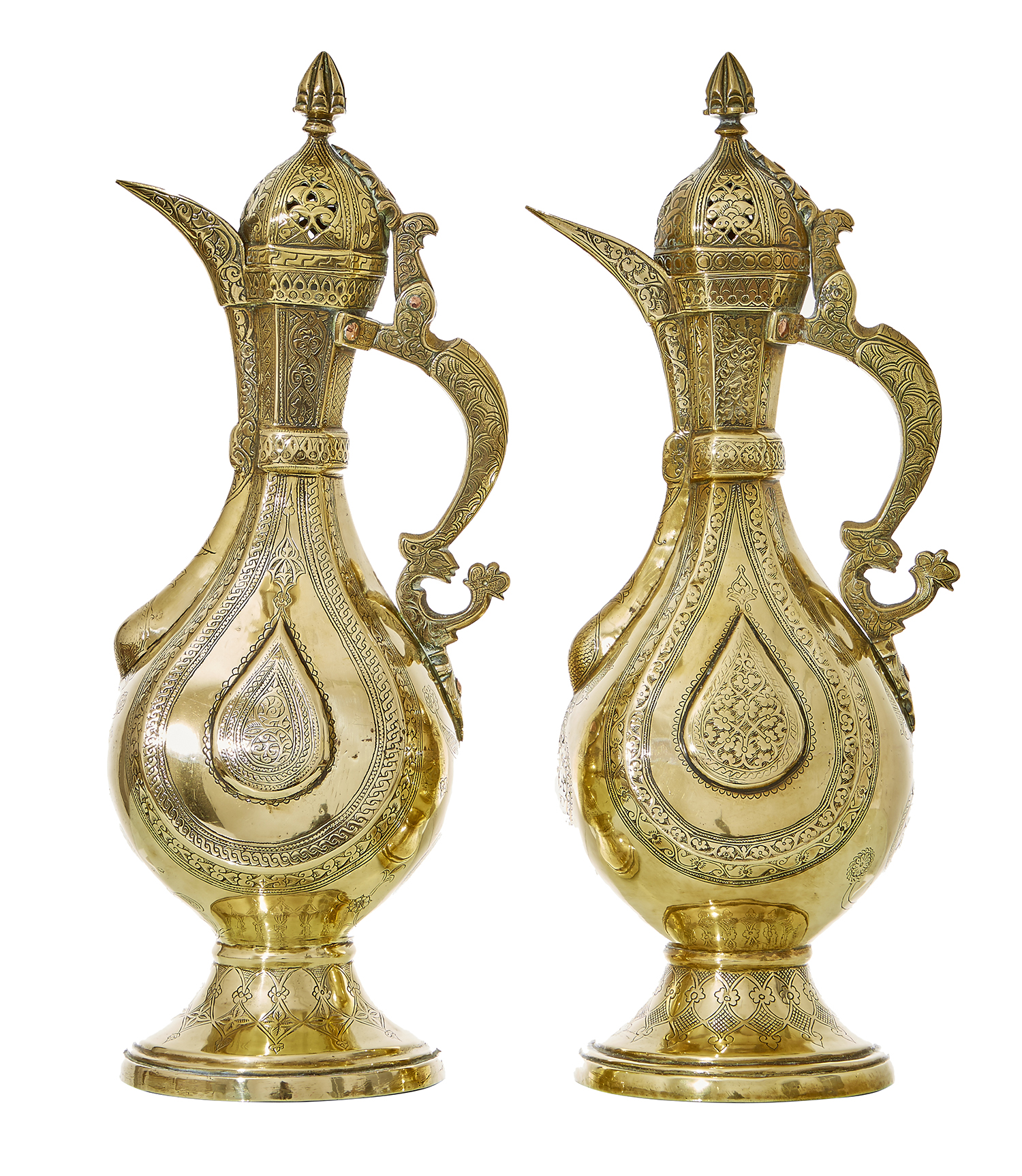A PAIR OF UZBEK BRASS EWERS
