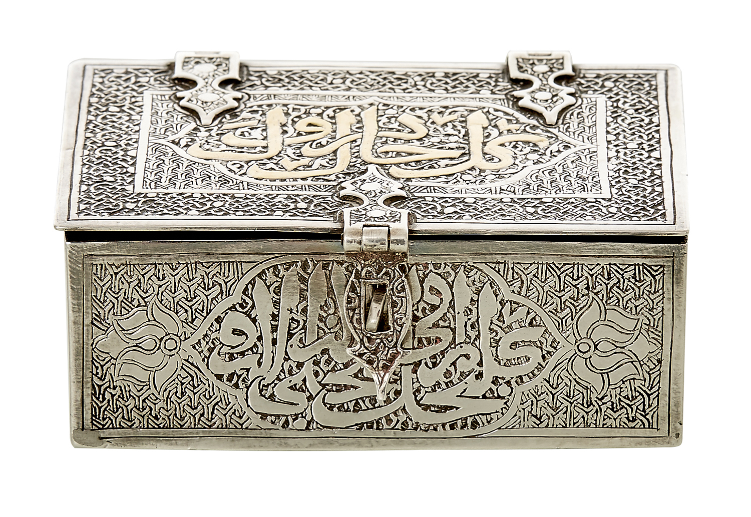 A SYRIAN PARCEL GILT AND SILVER KORANIC BOX