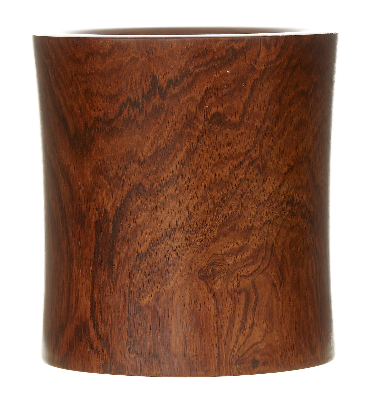 The undecorated brushpot of gently waisted form, showing a finely figured grain exhibiting some 'ghost face' markings.