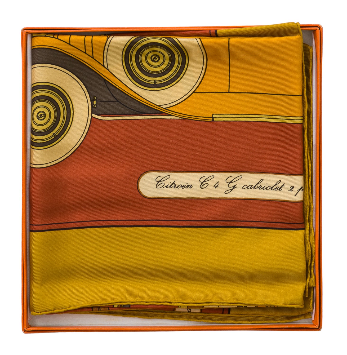 The 'Citroen' design by Henri d'Origny on burnt orange background, 90cm square, boxed.