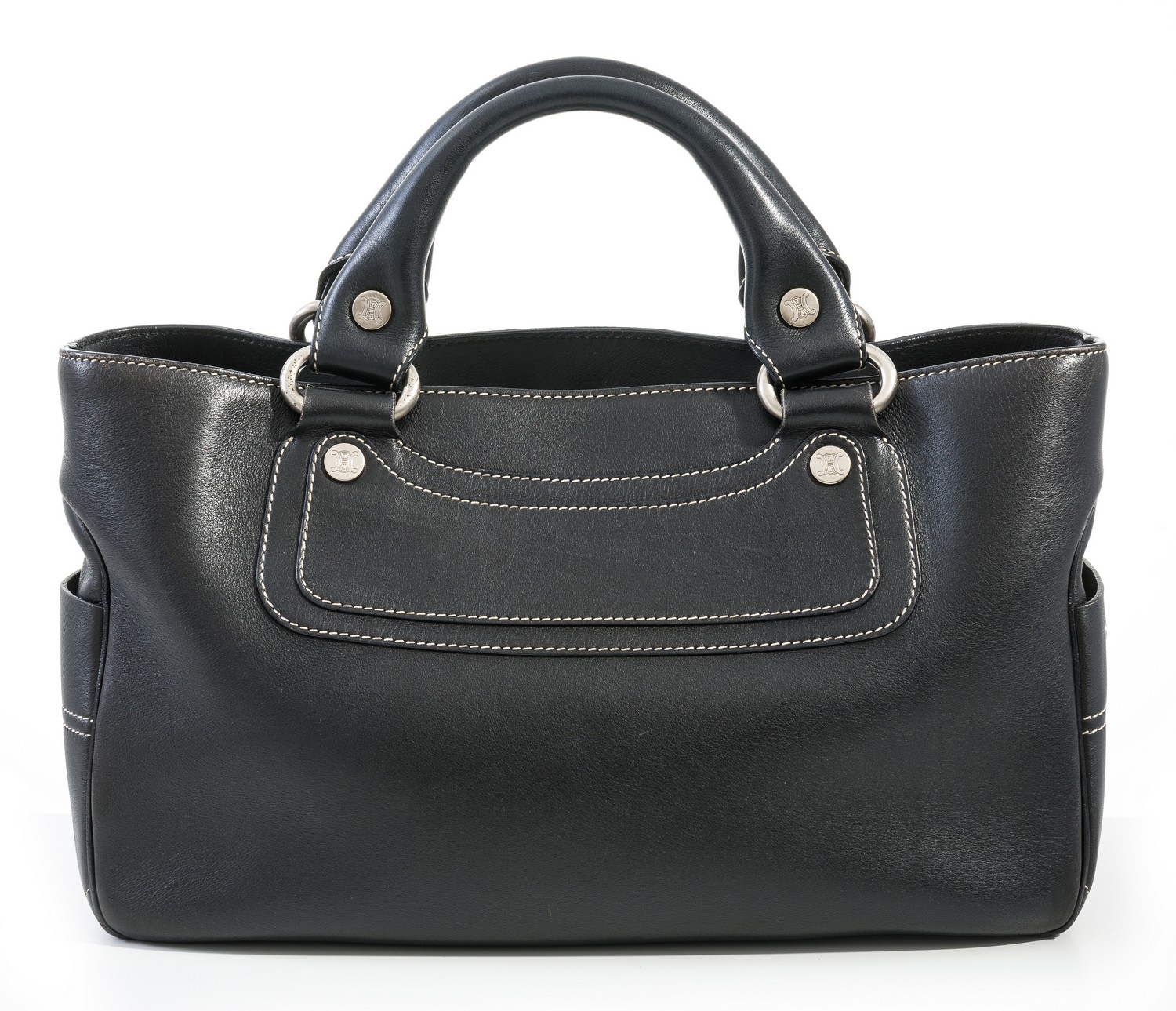 Styled in black leather with brushed silver hardware, serial number CE00/23, 20 x 32 x 12cm.